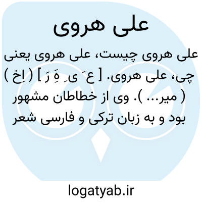 علی هروی. [ ع َ ی ِ هَِ رَ ] ( اِخ ) ( میر... ). وی از خطاطان مشهور بود و به زبان ترکی و فارسی شعر نیز می سرود. استاد خط او سلطانعلی مشهدی بود و برخی خط وی را بر استادش ترجیح داده اند. علی هروی دراواخر عمر توسط ازبکان اسیر گشت و به بخارا منتقل شد و در آنجا به سال 924 یا 925 و یا 926 هَ. ق. درگذشت و در مرقد سیف الدین باخرزی دفن شد. او را رساله ای است به فارسی به نام «مدادالخط». و نیز اشعار و معماهایی از وی نقل میکنند. ( از الذریعه ج 9 ص 764 ).