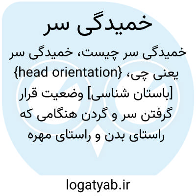 {head orientation} [باستان شناسی] وضعیت قرار گرفتن سر و گردن هنگامی که راستای بدن و راستای مهره های گردن یکی نباشد