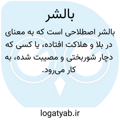 بالشر اصطلاحی است که به معنای در بلا و هلاکت افتاده، یا کسی که دچار شوربختی و مصیبت شده، به کار می‌رود. این کلمه، که ریشه‌ای عمیق در ادبیات و فرهنگ فارسی دارد، بیانگر وضعیتی ناگوار و سرنوشتی محنت‌بار است که فرد یا جامعه‌ای ممکن است با آن روبرو شود. در واقع، بالشر فراتر از یک لغت ساده، بازتاب‌دهنده دیدگاهی فلسفی به زندگی و تقدیر است که در آن، گاه انسان در چنبره حوادث و وقایعی قرار می‌گیرد که کنترل آن‌ها از توان او خارج است و به ورطه نابودی یا بدبختی کشانده می‌شود. این واژه اغلب برای توصیف افرادی به کار می‌رود که در اوج گرفتاری‌ها و سختی‌های طاقت‌فرسا قرار دارند.