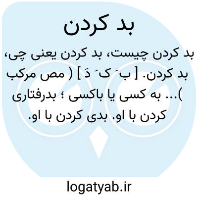 بد کردن. [ ب َ ک َ دَ ] ( مص مرکب )... به کسی یا باکسی؛ بدرفتاری کردن با او. بدی کردن با او. اسائه. ظلم کردن. ( از یادداشت مؤلف ). بدکرداری کردن. بدفعلی نمودن. مرتکب کار بد و ناپسندیده شدن: