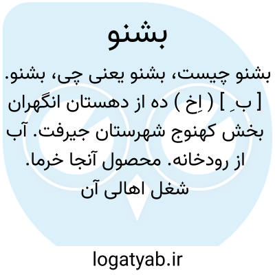 بشنو. [ ب ِ ] ( اِخ ) ده از دهستان انگهران بخش کهنوج شهرستان جیرفت. آب از رودخانه. محصول آنجا خرما. شغل اهالی آن زراعت. ( از فرهنگ جغرافیایی ایران ج 8 ).