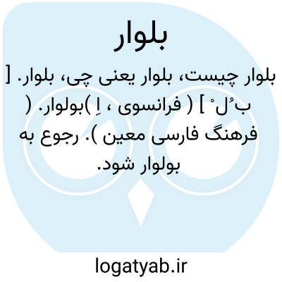بلوار. [ ب ُل ْ ] ( فرانسوی، اِ )بولوار. ( فرهنگ فارسی معین ). رجوع به بولوار شود.