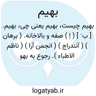 بهیم. [ ب َ ] ( اِ ) صفه و بالاخانه. ( برهان ) ( آنندراج ) ( انجمن آرا ) ( ناظم الاطباء ). رجوع به بهو شود.