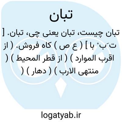 تبان.[ ت َب ْ با ] ( اِخ ) الفارسی. وی در کوفه از ابی عبدةبن ابی السفر حدیث کرد و ابوبکر محمدبن ابراهیم بن المقری از وی روایت دارد. ( انساب سمعانی ورق 103 الف ).