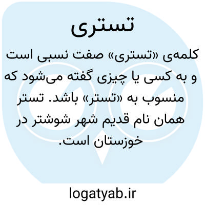 کلمهی «تستری» صفت نسبی است و به کسی یا چیزی گفته میشود که منسوب به «تستر» باشد. تستر همان نام قدیم شهر شوشتر در خوزستان است که در منابع تاریخی و متون کهن به این صورت ذکر شده است. بنابراین «تستری» به معنای «شوشترى» یا وابسته به شوشتر است.