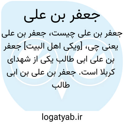 [ویکی فقه] جعفر بن علی (ابهام زدایی). جعفر بن محمد ممکن است اسم برای اشخاص ذیل باشد:• جعفر بن علی بن ابی طالب یکی از شهدای کربلا• جعفر بن علی الهادی، ملقب به جعفر کذاب، فرزند امام هادی علیه السلام• جعفر بن علی تبریزی، از نخستین استادان خط نستعلیق در قرن نهم و خطاط شاهنامه بایسنغری