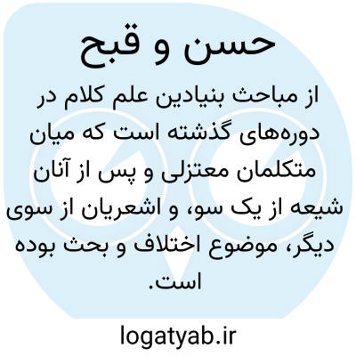 [ویکی فقه] ـــ حُسن و قُبح، یکی از مباحث عمده در کلام اسلامی و به تَبَع، مبحثی در اصول فقه می باشد. ـــ مباحث مربوط به ادراک عقلی حُسن و قبح اشیا و ملازمه آن با حکم شرع را حسن و قبح گویند.