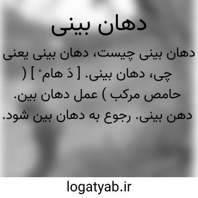 دهان بینی. [ دَ هام ْ ] ( حامص مرکب ) عمل دهان بین. دهن بینی. رجوع به دهان بین شود.