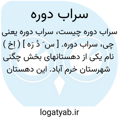 سراب دوره. [ س َ دُ رَه ْ ] ( اِخ ) دهی است مرکز دهستان از بخش چگنی شهرستان خرم آباد. راه اتومبیل رو خرم آباد بکوهدشت از وسط این آبادی عبور می نماید. آب آنجا از سراب دوره تأمین می شود. محصول آنجا غلات، حبوب، لبنیات. هوای آنجا معتدل و دارای 300 تن سکنه است. شغل اهالی زراعت و گله داری است. صنایع دستی زنان سیاه چادربافی است و مزارع دار خدایار در این آبادی است. راه آن اتومبیل رو است. دارای دبستان می باشد. ساکنین از طایفه بهرامی بوده در ساختمان و سیاه چادر سکونت دارند. ( از فرهنگ جغرافیایی ایران ج 6 ).