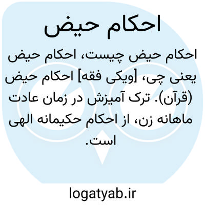 [ویکی فقه] احکام حیض (قرآن). ترک آمیزش در زمان عادت ماهانه زن، از احکام حکیمانه الهی است.