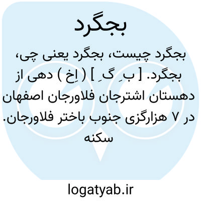 بجگرد. [ ب ِ گ ِ ] ( اِخ ) دهی از دهستان اشترجان فلاورجان اصفهان در 7 هزارگزی جنوب باختر فلاورجان. سکنه آن 385 تن، آب از زاینده رود. محصول آن غلات و پنبه است. ( از فرهنگ جغرافیایی ایران ج 10 ).