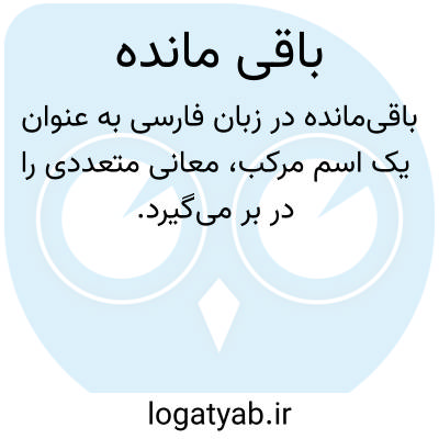 ( اسم ) ۱ - بجا مانده باز مانده. ۲ - ثابت بر قرار. ۳ - پس مانده در عقب مانده. ۴- بقیه تتمه. ۵ - مقداری که پس از تقسیم باقی ماند. ۶ - وارث میراث خوار.