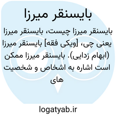 [ویکی فقه] بایسنقر میرزا (ابهام زدایی). بایسنقر میرزا ممکن است اشاره به اشخاص و شخصیت های ذیل باشد: • بایسنقر میرزا (فرزند شاهرخ)، فرزند شاهرخ پسر تیمور، امیرزاده ی نامور و هنرپرور گورکانی• بایسنقر میرزا (نواده تیمور گورکانی)، یکی از نوادگان تیمور گورکانی و از امیران ماوراءالنهر