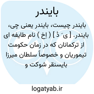 💡 اول – بایندر: که در اصل بای اندر بوده. بای بمعنی بزرگ باشکوه است و اندر مکان مرتفع مانند پشته و کوه یعنی بزرگ بلندقدر.