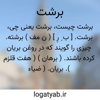 برشت. [ ب ِ رِ ] ( ن مف ) برشته. چیزی را گویند که در روغن بریان کرده باشند. ( برهان ) ( هفت قلزم ). بریان. ( ضیاء ).
