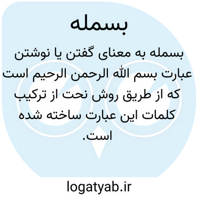 از زبر بسمله تا به سر نستعین.قاآنی.|| استعانت بنام خدا درخطابه و هر کاری: کل امر ذی بال لم یبداء ببسم اﷲ فهو اَبتر. || در تداول فقه و تفسیر اختلاف است که بسم اﷲ در اول هر سوره آیه مستقلی است یا از آیات آن سوره است چنانکه صاحب شرایع بسمله را آیه ای از سوره حمد میشمارد و قرائت آن را با سوره حمد واجب میداند. رجوع به شرایع چ 1307 هَ. ق. ص 21 و بسم اﷲالرحمن الرحیم شود.