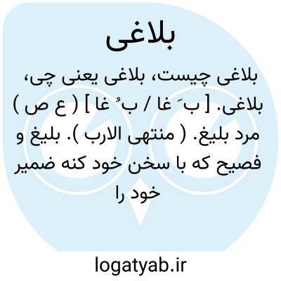 بلاغی. [ ب َ غا / ب ُ غا ] ( ع ص ) مرد بلیغ. ( منتهی الارب ). بلیغ و فصیح که با سخن خود کنه ضمیر خود را برساند. ( از ذیل اقرب الموارد از قاموس ).