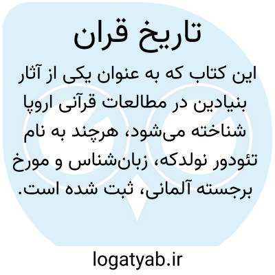 [ویکی فقه] تاریخ قرآن. کتاب تاریخ قرآن کتابی است به زبان آلمانی در حوزه پژوهشهای قرآنی و منسوب به تئودور نولدکه.