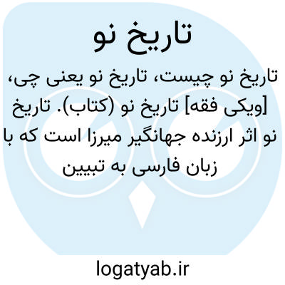 [ویکی فقه] تاریخ نو (کتاب). تاریخ نو اثر ارزنده جهانگیر میرزا است که با زبان فارسی به تبیین حوادث دوره قاجاریه، از سال ۱۲۴۰ تا ۱۲۶۷ ق می پردازد که به مناسبت نام مؤلف، آن را تاریخ جهانگیری نیز می خوانند.