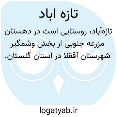 تازه آباد. [ زَ ] ( اِخ ) دهی از دهستان خرم آباد شهرستان تنکابن است که در 10هزارگزی جنوب خاوری تنکابن واقع است. دشت و جنگل معتدل و مرطوب مالاریائی است و 320 تن سکنه دارد، شیعه، گیلکی و فارسی. آب آن از رودخانه چشمه کیله. محصول آن جالیزکاری. شغل اهالی زراعت. راه مالرو دارد. ( از فرهنگ جغرافیائی ایران ج 3 ).