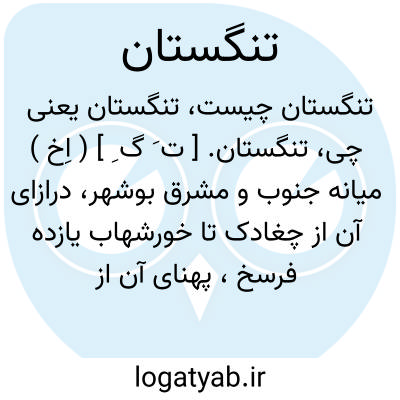 تنگستان. [ ت َ گ ِ ] ( اِخ ) میانه جنوب و مشرق بوشهر، درازای آن از چغادک تا خورشهاب یازده فرسخ، پهنای آن از دو فرسخ نگذرد. محدود است از جانب مشرق به نواحی اهرم و خورموج و از شمال به نواحی برازجان و از سمت مغرب و جنوب به دریای فارس... و قصبه این ناحیه را نیز تنگستان گویند، نزدیک 200 خانه دارد پنج فرسخ از بوشهر و چهل وسه فرسخ از شیراز دور افتاده است. و اهالی دشتستان مردم ناحیه تنگستان را تنگ سیر گویند و این ناحیه مشتمل است بر سی ویک ده آباد. ( از فارسنامه ناصری ). به دهستانهای سمل، باغک، ساحلی و خاویز از بخش اهرم شهرستان بوشهر بطور کلی تنگستان، و سواحل خلیج فارس را در این قسمت، سواحل تنگستان گویند. رجوع به سمل و باغک و ساحلی و خاویز شود. ( از فرهنگ جغرافیایی ایران ج 7 ).