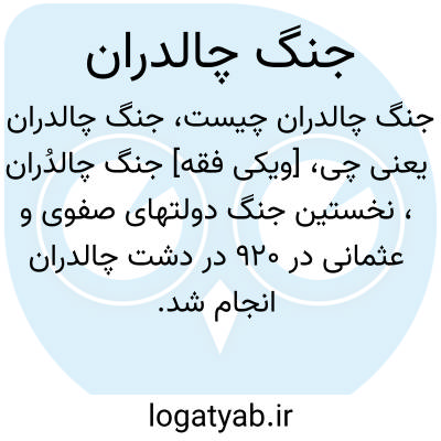 [ویکی شیعه] جنگ چالدُران، نخستین جنگ دولت های صفوی و عثمانی در سال ۹۲۰ قمری در دشت چالدران. فرمانده سپاهیان صفوی را شاه اسماعیل اول صفوی برعهده داشت و فرمانده سپاهیان عثمانی، برعهده شاه سلیم اول بود. نتیجه جنگ شکست سپاهیان صفوی و خانه نشین شدن شاه اسماعیل بود.