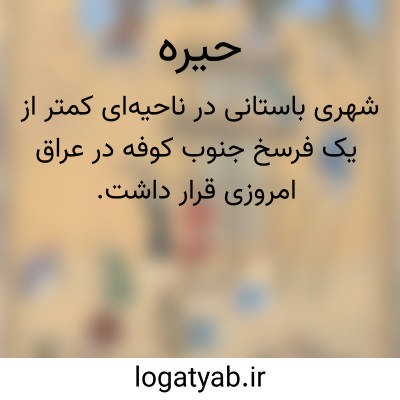 شهری باستانی در ناحیهای کمتر از یک فرسخ جنوب کوفه در عراق امروزی قرار داشت. این شهر در دوران حکومت ساسانیان از اهمیت و رونق قابلتوجهی برخوردار بود و بهویژه بهعنوان مرکز سکونت اعراب لخمی شناخته میشد که تحت حاکمیت شاهنشاهی ایران، نقش حائلی در برابر هجوم قبایل بیاباننشین ایفا میکردند. از بناهای مشهور مجاور حیره میتوان به کاخهای افسانهای خورنق و سدیر اشاره نمود. همچنین، این شهر در تاریخ تجاری منطقه جایگاه ویژهای داشت و بهعنوان مرکز تولید و صادرات منسوجات ارزشمندی مانند قالی و فرشهای معروف به حیری شناخته میشد، که ابنرسته از نعمانیه، یکی از شهرهای حیره، بهعنوان خاستگاه این کالاها نام برده است.
