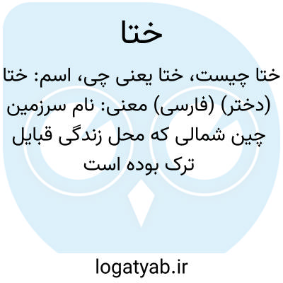 خان ختا را نهاد مائده هفتخوان.خاقانی.با لشکر ختا برای مصلحتی صلح کرده بود. ( گلستان سعدی ). جماعت حکماابتدا و انتهای آفرینش را منکرند و میگویند لازم ذات واجب الوجود است و هرگز نبوده که نبوده و هرگز نباشدکه نباشد و اهل شرع، مدت ابتدای آفرینش را حصر نکرده اند. اما گفته اند هم ابتداش باشد هم انتهاء چه منزه، از ابتدا و انتها ذات واجب الوجود است و علماء هند وختا و ختن و چین و ماچین بخشیان و فرنگان... ( از تاریخ گزیده چ نوائی ص 8 ). از پل مالان تا باغ جهان آرا کوچه ها و بازارها را آیین بستند و چهار طاقها برافراخته تمامی جدران و دکاکین را بدیبای چین و مخمل فرنگ و اطلس ختا و تاچه هفت رنگ بیاراستند. ( حبیب السیر چ خیام ج 4 ص 185 ). لاجرم سلک جمعیت دشمنان نکبت قرین مانند زلف خوبان ختا و چین پریشان گشت و الوند از معرکه جنگ روی گریز بصوب ارزنجان آورده از نام و ننگ درگذشت. ( حبیب السیر چ خیام ج 4 ص 466 ). الاقلیم الرابع: این اقلیم به آفتاب تعلق دارد و وسط معموره عالم و مسکن اشراف اولاد آدم است و متوطنان بلاد این اقلیم بحسب صورت و سیرت افضل اولاد بشرند و بوفور حسن خلق و لطف طبع مظهر اصناف فضل و هنر و ابتداء اقلیم چهارم از مشرق از شمال بلاد چین بود پس بر اراضی تبت و خرخیز وختا و جبال کشمیر و بلغر و بدخشان و جنوب بلاد یأجوج و مأجوج گذرد پس بر وسط دیار بکر و بلاد عراق و دیار ربیعه و شمال بلاد شام گذرد و آنجا بحر روم را قطعکند و بر جزیره قبرس و سقلیه و شمال بلاد مصر و اسکندریه و بلاد باریقی و بلاد افرنجه و طنجه بگذرد و بساحل بحر محیط منتهی شود بعضی از مواضع غریبه این اقلیم بر این موجب است. ( حبیب السیر چ خیام ج 4 ص 634 ).