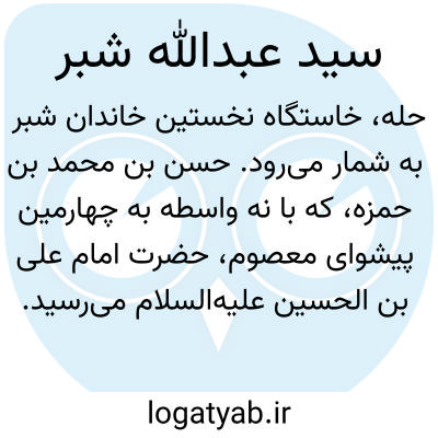 [ویکی فقه] حلّه را باید خاستگاه نخست خاندان شبّر دانست. حسن بن محمد بن حمزه که با ۹ واسطه نسب به چهارمین پیشوای معصوم حضرت امام علی بن الحسین ـ علیه السّلام ـ می رساند، شبر خوانده می شد. و لقب ارجمندش شهرت خاطره آفرین همه فرزندانش گشت. یازده نسل پس از حسن بن محمد فرزند گرانقدرش محمد رضا از افق نجف سربرآورد و دودمان کهنسال شبر را اعتباری تازه بخشید.