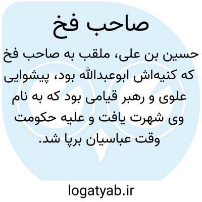 [ویکی شیعه] صاحب فَخّ، لقب حسین بن علی از نوادگان امام حسن مجتبی(ع)، پیشوای قیامی مشهور به واقعه فخ که در سال ۱۶۹ق علیه هادی عباسی از مدینه آغاز شد و در سرزمینی به نام فخ نزدیک مکه پایان یافت.