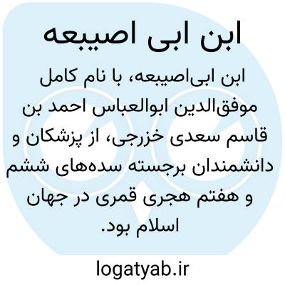 [ویکی فقه] «ابن ابی اصیبعه، موفق الدین ابوالعباس احمد بن قاسم سعدی خزرجی» (ح ۵۹۵- ۶۶۸ ق) مشهورترین پزشک خاندان ابی اصیبعه است.