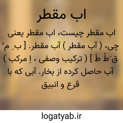 [ویکی فقه] آب مقطر. به آبی که در اثر بخار شدن آب به دست می آید آب مقطّر گفته می شود و از آب مقطر به مناسبت در باب طهارت سخن رفته است.