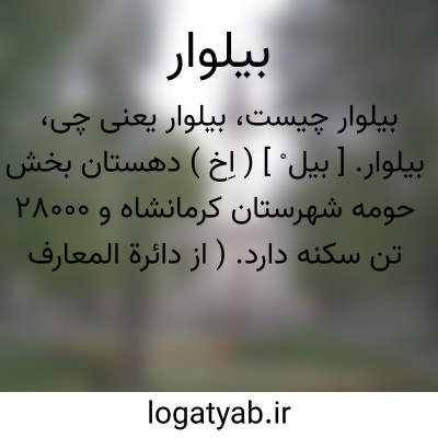 بیلوار. [ بیل ْ ] ( اِخ ) دهستان بخش حومه شهرستان کرمانشاه و 28000 تن سکنه دارد. ( از دائرة المعارف فارسی ).