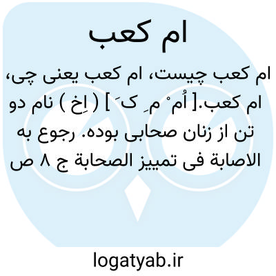 ام کعب.[ اُم ْ م ِ ک َ ] ( اِخ ) نام دو تن از زنان صحابی بوده. رجوع به الاصابة فی تمییز الصحابة ج 8 ص 272 شود.