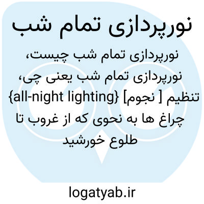 {all-night lighting} [نجوم ] تنظیم چراغ ها به نحوی که از غروب تا طلوع خورشید روشن باشند