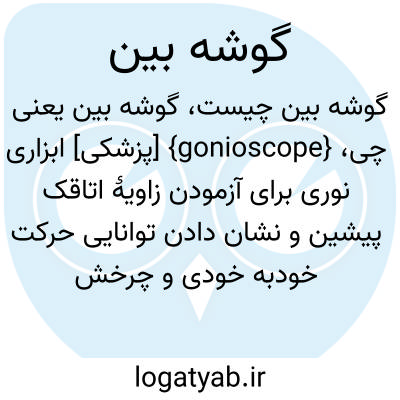 {gonioscope} [پزشکی] ابزاری نوری برای آزمودن زاویۀ اتاقک پیشین و نشان دادن توانایی حرکت خودبه خودی و چرخش چشم