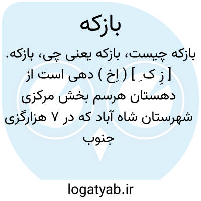 بازکه. [ زِ ک ِ ] ( اِخ ) دهی است از دهستان هرسم بخش مرکزی شهرستان شاه آباد که در 7 هزارگزی جنوب خاوری هرسم و جنوب خاوری شاه آباد در دشت قرار دارد. هوایش سرد و دارای 180 تن سکنه میباشد. آبش از زه آب رودخانه باقرآباد و محصولش غلات، دیمی کاری، لبنیات، شغل مردمش زراعت و گله داری وراهش مالرو است. ( از فرهنگ جغرافیائی ایران ج 5 ).