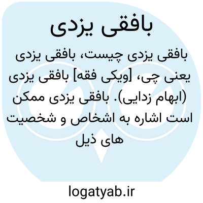 [ویکی فقه] بافقی یزدی (ابهام زدایی). بافقی یزدی ممکن است اشاره به اشخاص و شخصیت های ذیل باشد: • ابوالحسن بن حسین بافقی حائری یزدی، بافْقی حائری یزدی، ابوالحسن بن حسین، محدث و رجالی شیعی قرن سیزدهم• شرف الدین علی بافقی، بافْقی، شرف الدّین علی، شاعر وادیب نیمه دوم قرن دهم• عبدالحسین آیتی بافقی یزدی، عبدالحسین آیتی بافقی یزدی، ادیب و شاعر و نویسنده ایرانی• محمدتقی بافقی، بافْقی، آیت اللّه محمدتقی، از علمای دین در دوره رضاخان