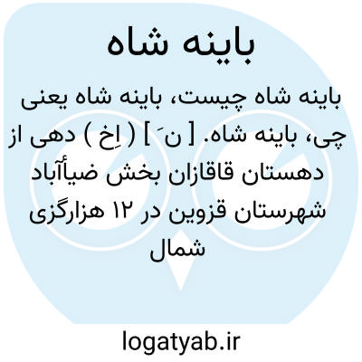 باینه شاه. [ ن َ ] ( اِخ ) دهی از دهستان قاقازان بخش ضیأآباد شهرستان قزوین در 12 هزارگزی شمال مرکز بخش، سکنه آن 231تن، آب از چشمه سار، محصول آن غلات و لبنیات، شغل اهالی زراعت، گله داری، گلیم و جاجیم بافی. سکنه از طایفه کاکاوند هستند. ( از فرهنگ جغرافیائی ایران ج 1 ).