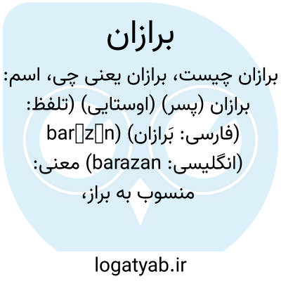 معنی: منسوب به براز، منسوب به برازندگی و آراستگی، ( براز، ان ( پسوند نسبت ) )، ( به مجاز ) برازنده، ( اَعلام ) نام چند ستاره