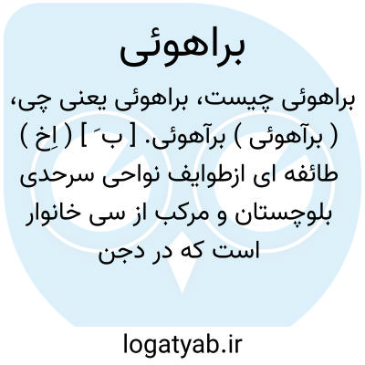 ( برآهوئی ) برآهوئی. [ ب َ ] ( اِخ ) طائفه ای ازطوایف نواحی سرحدی بلوچستان و مرکب از سی خانوار است که در دجن سکونت دارند. ( جغرافیای سیاسی کیهان ).