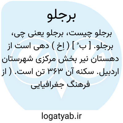 برجلو. [ ب ُ ] ( اِخ ) دهی است از دهستان نیر بخش مرکزی شهرستان اردبیل. سکنه آن 363 تن است. ( از فرهنگ جغرافیایی ایران ج 4 ).