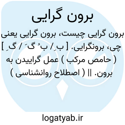 برونگرایی. [ ب ِ/ ب ُ گ َ / گ ِ ] ( حامص مرکب ) عمل گراییدن به برون. || ( اصطلاح روانشناسی ) برونگرایی و درونگرایی اصطلاحاتی است که «ک. گ. یونگ » وضع کرده و حاکی از دو نوع شخصیت متناقض است. فعالیت کلی یا شوق و کشش در شخص برونگرا آفاقی ( یعنی متوجه دنیای خارج )، و در درونگرا انفسی ( یعنی متوجه بدرون شخص ) است. هر کس به این هر دو متمایل است، اما همواره بر اثر محیط و خصوصیات خلقی، یکی بر دیگری تفوق دارد و بنحو بارزی آشکار میشود. برونگرایی حاد فرار نامعقول و غیرمنطقی از نفس و نمایش دادن احساسات در جمع است ( مانند هیستری و هیجان شدید )، و درونگرایی حاد عبارت از عقب نشینی به دنیای درون است، و درین حال خیالبافی جانشین واقعبینی میشود. «یونگ » بیماری تقسیم خاطر را اختلال مشاعر شخص درونگرا می داند. ( از دایرة المعارف فارسی ).