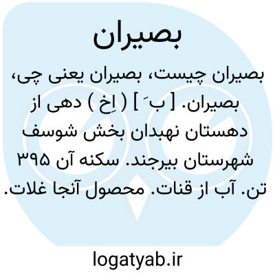 بصیران. [ ب َ ] ( اِخ ) دهی از دهستان نهبدان بخش شوسف شهرستان بیرجند. سکنه آن 395 تن. آب از قنات. محصول آنجا غلات. شغل اهالی آن زراعت و مالداری. ( از فرهنگ جغرافیایی ایران ج 9 ).