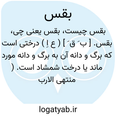 بقس. [ ب َ ق َ ] ( ع اِ ) درختی است که برگ و دانه آن به برگ و دانه مورد ماند یا درخت شمشاد است. ( منتهی الارب ) ( ناظم الاطباء ) ( از آنندراج ). گز مازک. ( فرهنگ فارسی معین ). بقش یا بقسیس. ( ابن بیطار ). از بقسین و یابقسلون یونانی است و اهل شام شمشار و بفارسی شمشاد نامند و آن درختی است عظیم، برگ آن مانند برگ انار ومورد و از آن کوچکتر و سبزتر و ساق آن سفید و صلب وچون خشک شود مایل بزردی گردد و از آن قاشق و عصا و متکی و شانه و غیرها سازند، بسبب نرمی و صافی آن ورقهای نازک مانند کاغذ نیز میسازند و بر آن قرآن و کتاب مینویسند و شاخه های آن پریشان و خزان نمیکند و گل آن سفید و با عطریت بسیار و تخم آن سیاه مانند حب الاَّس و فلفل است. ( از مخزن الادویه ). و رجوع به درختان جنگلی ایران ثابتی چ 1326 دانشگاه طهران ص 166 و تذکره داود ضریر انطاکی ص 83 و نشوءاللغة ص 49، 96 شود.