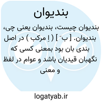 بندیوان. [ ب َ ] ( اِ مرکب ) در اصل بندی بان بود بمعنی کسی که نگهبان قیدیان باشد و عوام در لفظ و معنی غلط کرده اند که بجای باء موحده واو میخوانند و بجای بندی که بمعنی اسیر است بندیوان را به معنی قیدی و اسیر گویند. ( آنندراج ) ( غیاث ). زندان بان و نگهبان بندیان. ( ناظم الاطباء ) ( فرهنگ فارسی معین ). سجّان. حدّاد. زندانبان. دوستاق بان.