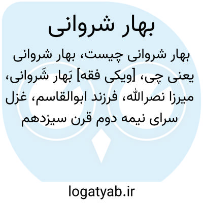[ویکی فقه] بَهار شَروانی، میرزا نصرالله، فرزند ابوالقاسم، غزل سرای نیمه دوم قرن سیزدهم بود.