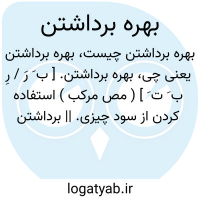 بهره برداشتن. [ ب َ رَ / رِ ب َ ت َ ] ( مص مرکب ) استفاده کردن از سود چیزی. || برداشتن حاصل زراعت. || سهم گرفتن. || عمل بفروش رساندن محصول کارخانه یا معدن. ( فرهنگ فارسی معین ).