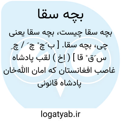 بچه سقا. [ ب َچ ْ چ َ / چ ِ س َق ْ قا ] ( اِخ ) لقب پادشاه غاصب افغانستان که امان اﷲخان پادشاه قانونی آن مملکت را مغلوب و منهزم نمود و او مجبور شد که با زن و اتباع خود به اروپا مهاجرت نماید. بچه سقا پس از غلبه، بر تخت سلطنت جلوس نمود و خود را به امیر حبیب اﷲخان متسمی کرد،اما پس از هفت هشت ماه سلطنت به دست نادرخان سفیر اسبق افغانستان در پاریس مغلوب و منهزم و سپس گرفتار گردید و در بیست ونهم جمادی الاولی سال 1348 هَ. ق. مطابق دوم نوامبر 1929 م. با ده دوازده نفر از اتباعش به حکم نادرخان مذکور کشته شد و خود نادرخان به اسم نادرشاه به تخت سلطنت نشست. ( از وفیات معاصرین بقلم محمد قزوینی مجله یادگار سال سوم شماره چهارم ).