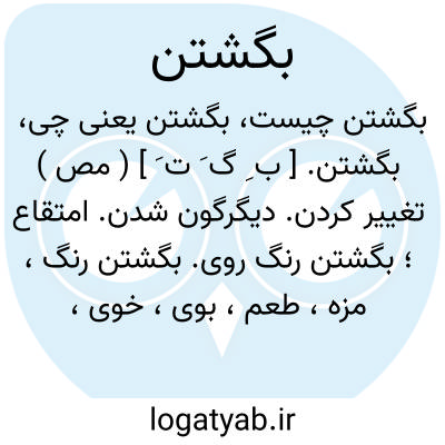 بگشتن. [ ب ِ گ َ ت َ ] ( مص ) تغییر کردن. دیگرگون شدن. امتقاع؛ بگشتن رنگ روی. بگشتن رنگ، مزه، طعم، بوی، خوی، سرکه و جزآن، تغییر کردن: از خشم گونه او بگشت: